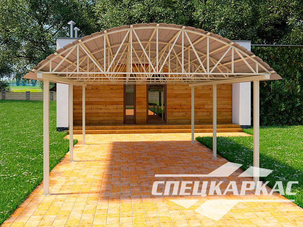 Навесы из профнастила с жёстким каркасом из профильных труб — купить на заказ у завода «Спецкаркас» по цене от 87 тыс. руб.! В стоимость включена доставка и установка под ключ. Изготовим по вашему размеру за 1-3 дня.